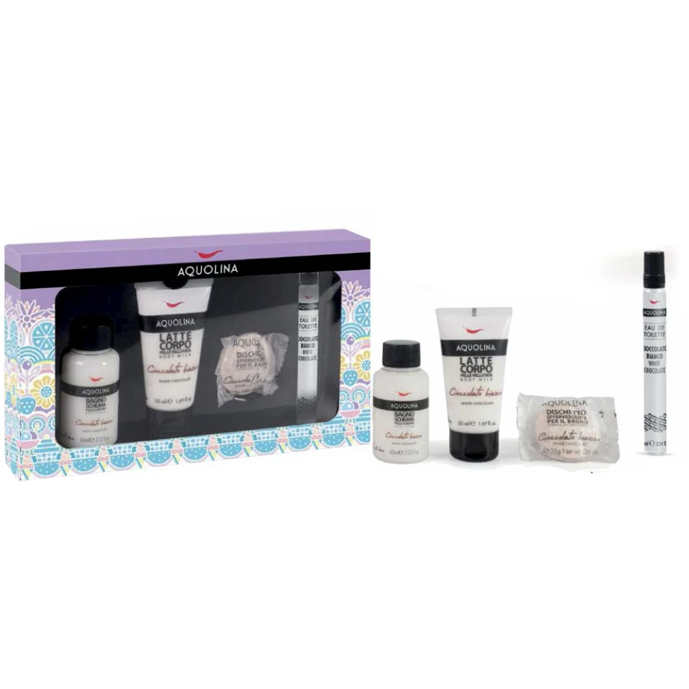 Acquolina Cofanetto NUVOLA TEXTURE GOLOSE CIOCCOLATO BIANCO CHE COMPRENDE: BAGNOSCHIUMA 60ml + LATTE CORPO 50ml + PROFUMO DA BORSETTA 10ml + DISCHETTO EFFERVESCENTE
