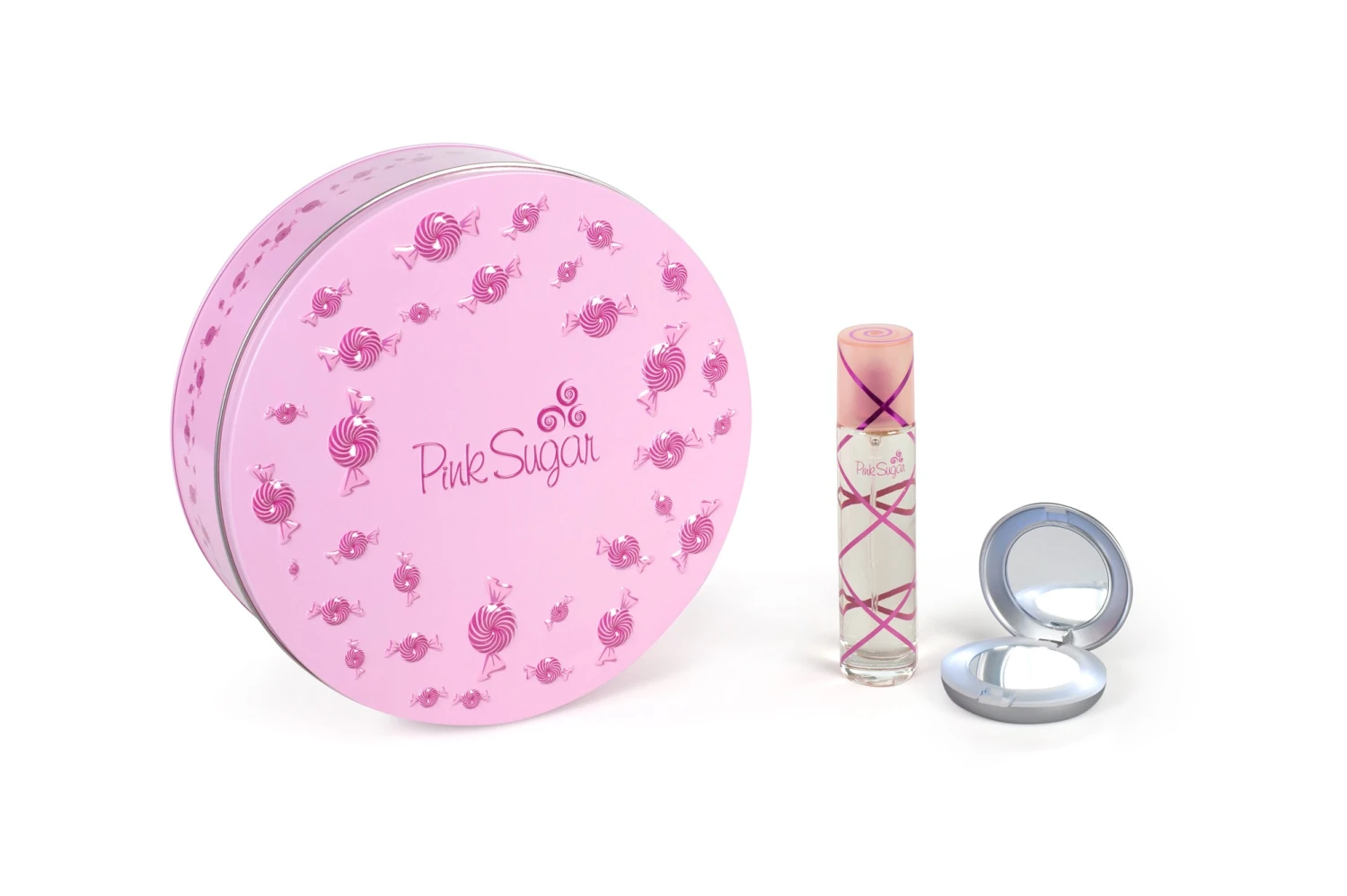 Cofanetto composto da pink sugar eau de toilette 50 ml + elegante specchietto con led. Un elegante cofanetto in latta che contiene tutta la magia e la dolcezza del mondo pink sugar, abbinato ad un pratico specchietto da borsetta.