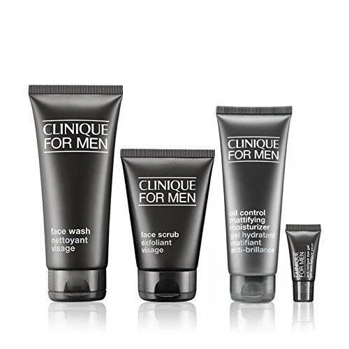 Clinique For Men Confezione Regalo 200 ml Oil-Control Sapone Viso + 100 ml Scrub Viso + 100 ml Oil-Control Idratante Opacizzante + 5 ml Gel Occhi Rinfrescante Anti-Stanchezza.