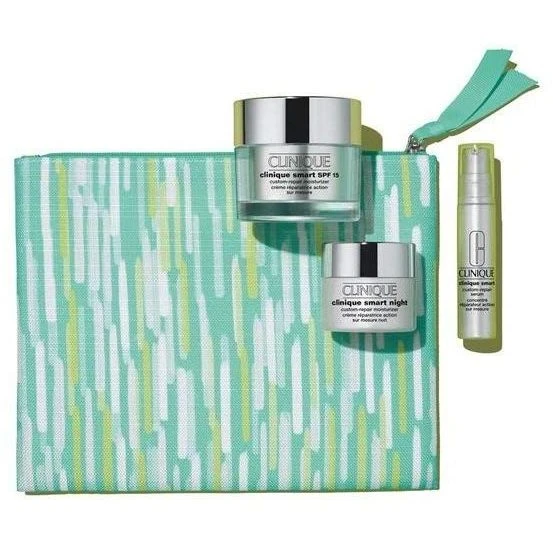 Clinique Smart Custom Repair Cofanetto Smart Pelle Liscia e Luminosa contiene: Smart Moisturizer SPF 15 (Tipo 1,2) 50 ml; Smart Night Moisturizer 15 ml; Smart Serum 10 m; pochette.
