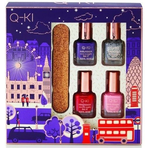 Cofanetto Regalo Q-KI Set 4 Mini Smalti + Lima Unghie Glitter