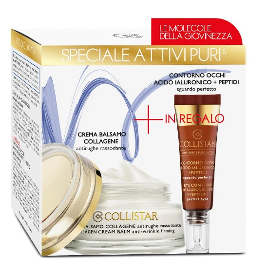 Collistar Cofanetto Attivi Puri Crema Balsamo Collagene Antirughe Rassodante + In Omaggio Contorno Occhi Acido Ialuronico + Peptidi 7,5 Ml