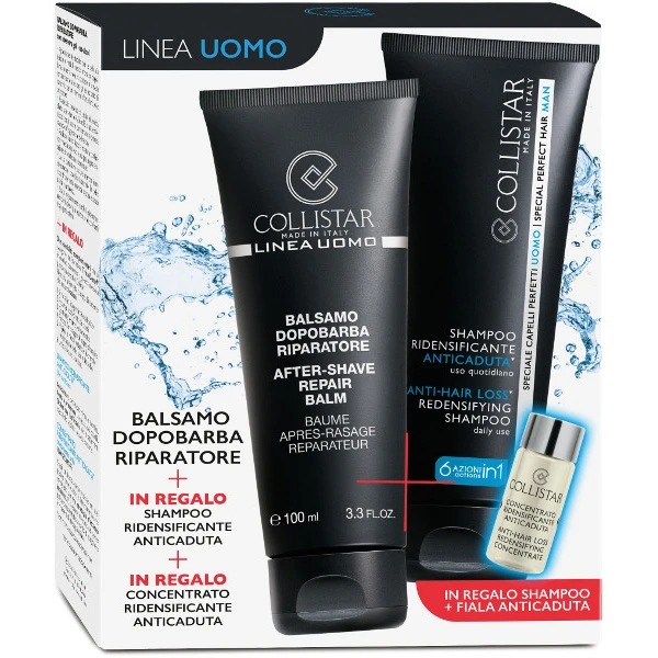 COLLISTAR – Balsamo Dopobarba Riparatore PROMO – 100 ml Dopobarba + 100 ML Shampoo Anticaduta + 6 ML Fiala Anticaduta.