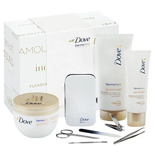 Dove DermaSpa Goodness Confezione Regalo 300 Ml Crema Corpo + 200 Ml Lozione Corpo + 75 Ml Crema Mani + Kit Manicure