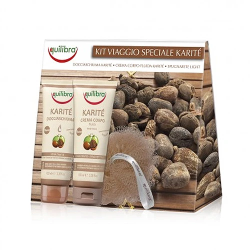 Equilibra – Cofanetto Da Viaggio Speciale Karitè – Crema Corpo Fluida 100 Ml + Docciaschiuma 100 Ml + Spugnarete Light Coordinata