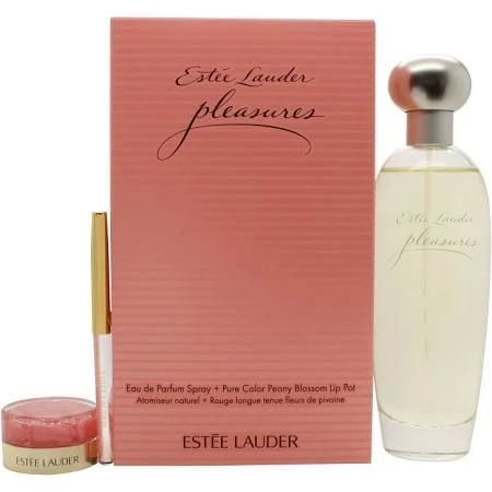 Estée Lauder Confezione Regalo 100ml Pleasures EDP + Peony Lip Pot – Pleasures di Estee Lauder é una fragranza fresca e floreale per le donne. Contiene note di giglio della valle, lillà, peonia, pepe rosa, fresia, giglio, rosa, gelsomino, tuberosa, violetta, sandalo, muschio, geranio, note verdi, patchouli, cedro, foglie di violetta, frutti rossi e karo karounde.