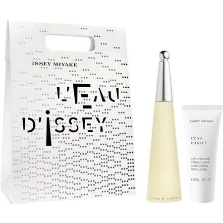 Issey Miyake L’Eau d’Issey Confezione Regalo 25 ml EDT + 75 ml Lozione Corpo Donna: Issey Miyake L’eau d’Issey è un profumo del gruppo Floreale Acquatico. Il Naso di questa fragranza è Jacques Cavallier. Le note di testa sono Ciclamino, Acqua di Rose, Melone, Fresia, Loto, Rosa e Calone; le note di cuore sono Garofano, Giglio, Peonia Bianca e Mughetto; le note di fondo sono Legni Esotici, Tuberosa, Ambra, Sandalo, Muschio Animale, Osmanto e Cedro.