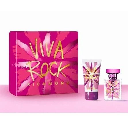 John Richmond Viva Rock Confezione Regalo 30 ml edt + 50 ml Lozione Corpo Donna. Viva Rock è un profumo floreale-legnoso-muschiato. Le note di testa sono Mandarino, Carambola (Frutto Stella) e Cactus; le note di cuore sono Gelsomino, Rosa e Fiore di Ciliegio; le note di base sono Muschio Animale, Ambra e Rizoma di Iris.
