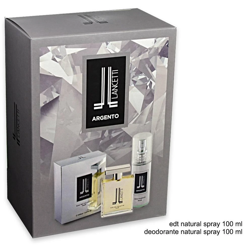 LANCETTI ARGENTO cofanetto idea regalo uomo profumo 100ml + deodorante spray 100ml