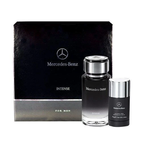 Mercedes Benz Intense Confezione Regalo 75 ml EDT + 75 g Deodorante Stick Uomo: Mercedes Benz Intense è un profumo speziato e legnoso. Contiene note di bergamotto calabrese, mandarino italiano, limone, foglie di violetta, pepe bourbon, galbano, noce moscata, violetta assoluta, ambrox, cedro americano, vetiver bourbon, patchouli indonesiano e cetalox. Mercedes Benz Intense è stato lanciato nel 2013.