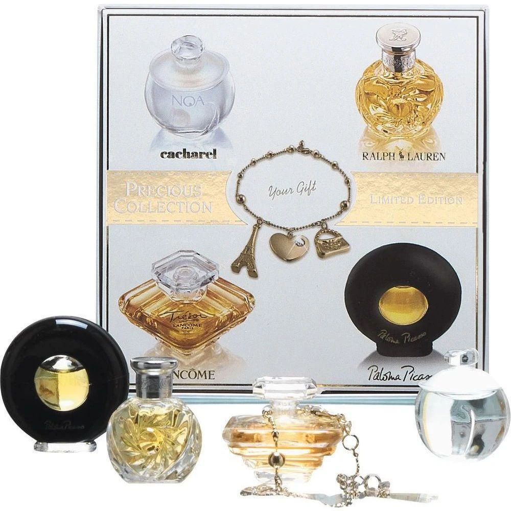 Precious Collection Miniatures Confezione Regalo 7 Ml Cacharel Noa + 7.5 Ml Lancome Tresor + 4 Ml Ralph Lauren Safari + 4.8 Ml Paloma Picasso + Braccialetto