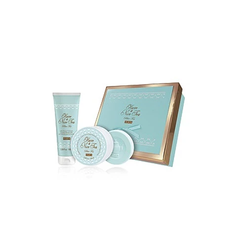 Un regalo raffinato presentato in preziose scatole decorate da inserti oro. Gustose fragranze dal profumo delicato e bon ton. 4 differenti colori pastello descrivono a pieno questa linea, riportando alla mente le delizie e latmosfera parigina: ROSE TEA BLUE TEA VANILLA TEA FRUITY TEA Allinterno prodotti per la cura di sè. Condividi con chi vuoi