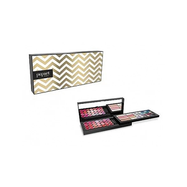 Motivi nordici abbinati a colori super chic. Davvero eleganti. Super completo e super compatto, regala trucchi per ogni occasione. E quanti colori! Per viso, occhi e labbra. Contiene: 2 fard compatti 1 fard in crema 1 cipria 1 terra 3 all over 3 correttori 1 primer occhi 20 ombretti 2 applicatori doppi 16 gloss 12 rossetti in crema