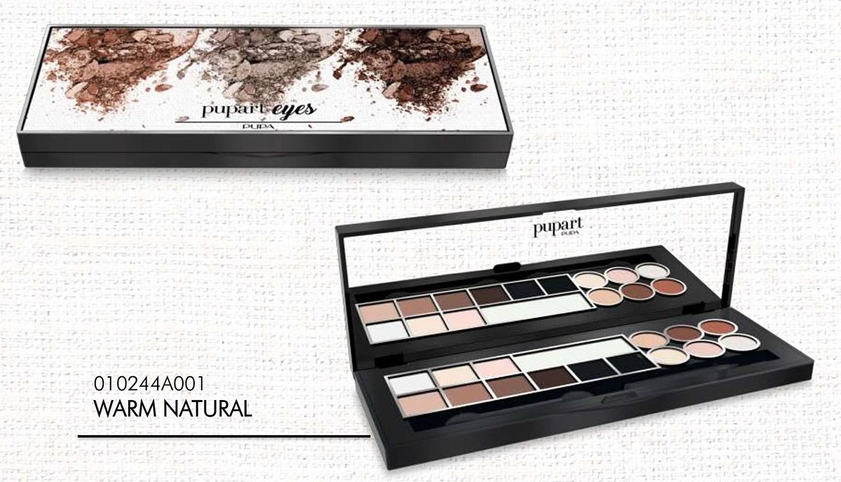 PUPA TROUSSE PUPART S EYES 001 WARM NATURAL CHE CONTIENE: 1 Primer, 8 OMBRETTI COMATTI, 1 Eyeliner, 6 Ombretti in crema, 1 pennello doppio, 1 pennello eyeliner