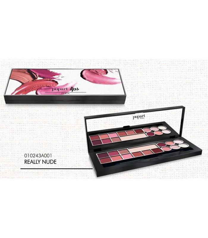 PUPA TROUSSE Pupart S Lips Really Nude 001 che comprende: LÈVRES – 1 Primer – 3 Rouges à lèvres mats – 3 Rouges à lèvres traditionnels – 3 Rouges à lèvres brillants – 6 Brillants à lèvres – 2 Applicateurs pour produits à lèvres