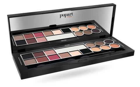 Correttori, primer, ombretti compatti dal tocco setoso declinati nei finish matt, per un look profondo e sofisticato, o shiny dall’effetto metallico e glitterato per un look più intenso. Un eyeliner nero e tre cere sopracciglia tonalizzate per definire lo sguardo.