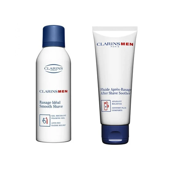 In questo kit, il tuo amato riceverà: – Clarins Men Rasage Ideal ( gel per la rasatura rinfrescante-emolliente-lenitivo ) 150 ml – Clarins Men Fluide Apres Rasage ( fluido dopobarba lenitivo ) 75 ml