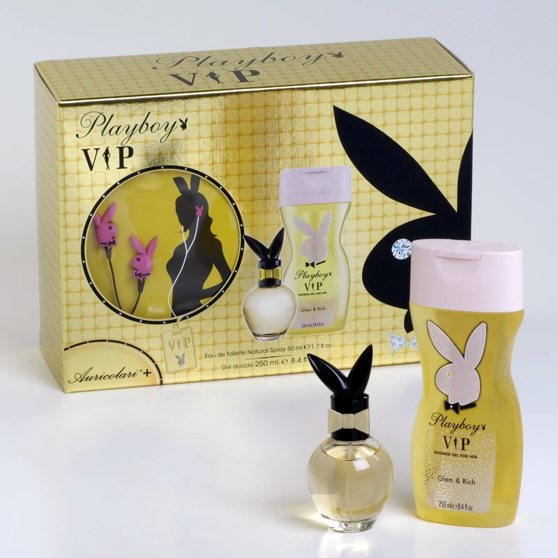 PLAYBOY VIP Confezione Contenente: – Eau de Toilette 50 ml spray; – Gel Doccia Profumato Glam&Rich 250 ml; – Auricolari Playboy.