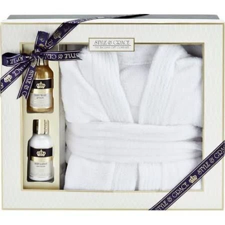 Style & Grace Signature Bathrobe Confezione Regalo 100 ml Bagnoschiuma + 100 ml Lozione Corpo + Accappatoio.