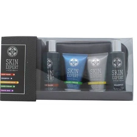 Style & Grace Skin Expert The Travellers Bag Confezione Regalo 200 ml Bagnoschiuma + 200 ml Shampoo + 200 ml Balsamo Dopobarba + Body Puff + Borsetta.