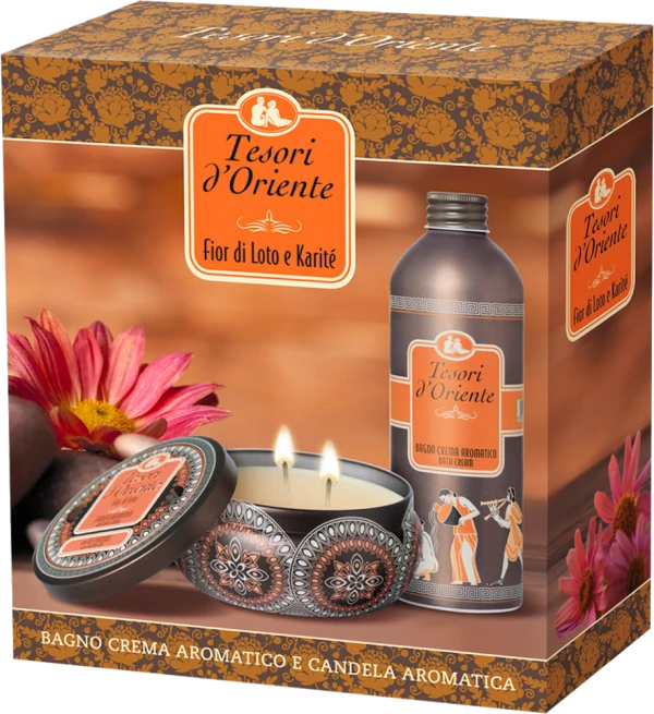 TESORI D’ORIENTE KIT CONFEZIONE REGALO VARIE FRAGRANZE Bagno Crema 500 Ml + Candela Aromatica Assortiti (NO SCELTA)