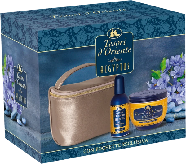 TESORI D’ORIENTE KIT CONFEZIONE REGALO VARIE FRAGRANZE PROFUMO AROMATICO 100 ML + CREMA CORPO AROMATICA IN VASO 300 ML + POCHETTE
