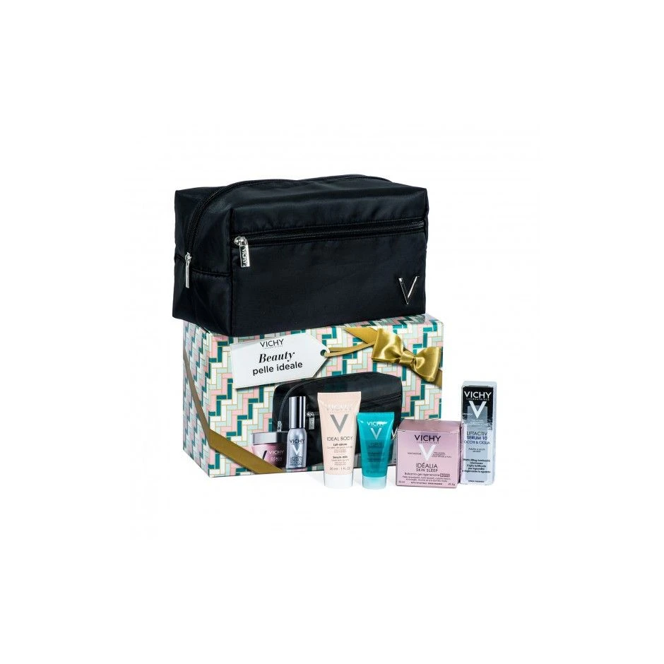 Vichy racchiude per la prima volta in un cofanetto i suoi gesti essenziali della sera per una pelle che al mattino appare più fresca, luminosa, come riposata. Detergi il viso con il gel puretè thermale. La sua formula a risciacquo pensata per eliminare le impurità renderà la pelle pulita, fresca e luminosa. Applica idealia skin sleep. il balsamo gel che al risveglio rende la pelle rimpolpata, i tratti riposati, il colorito fresco. Abbinalo con Lifactive serum 10 occhi e ciglia, il siero che trasforma, ringiovanisce e apre lo sguardo fino all’estremità delle ciglia, per un effetto lifting-luminosità istantaneo. Per finire completa il tuo rituale con un gesto coccola su tutto il corpo: ideal body latte siero per una pelle rassodata, luminosa ed idratata. Contiene: idealia skin sleep balsamo gel viso (50 ml), liftactiv serum 10 occhi e ciglia ( 15 ml). Il kit contiene anche: ideal body corpo latte siero pelle rassodata e levigata (30 ml) e puretè thermale pulizia viso ( 15 ml).